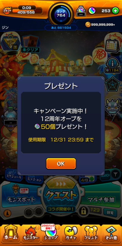昨日が期限だった11月分の12周年オーブを使わずに12月になってしまいました…
