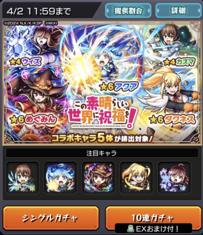 てか、主人公のカズマは☆6キャラじゃないのね(笑)