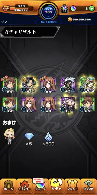 ☆5キャラは沢山出ましたが、☆6コラボキャラはなし。