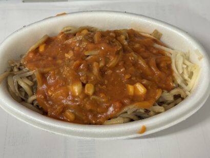 その上にトマトソースをかけた物なのですが、これがまた不思議なほどに合うんです(笑)