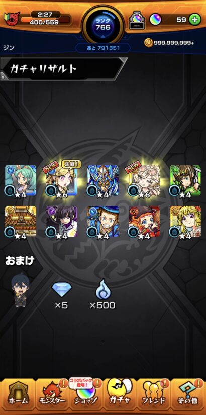 激・獣神祭限定のルネサンスが出てくれたし、未所持のキャラだしコラボが開催中の今回みたいな時に出られると嬉しいんだけど複雑な気持ちになります…