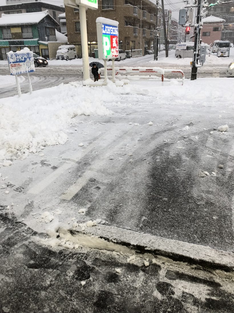 16時過ぎに買い物がてら会社近くのローソンに立ち寄りましたが店員さんが一生懸命スコップで駐車場の雪かきをしてました!