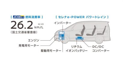 最近では日産ノートに搭載されたe- POWERが話題になってますが、今回新型セレナにもe- POWER搭載モデルが発売となりました!