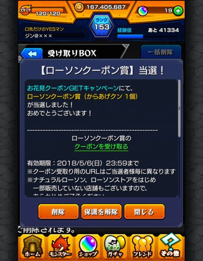 今回も運極にする事でクーポンを貰えるのですが今回は何かな?