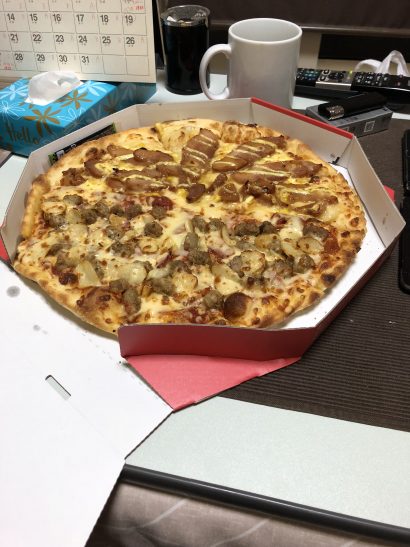 こんな会話の流れから久しぶりの宅配ピザを食べる事に(笑)