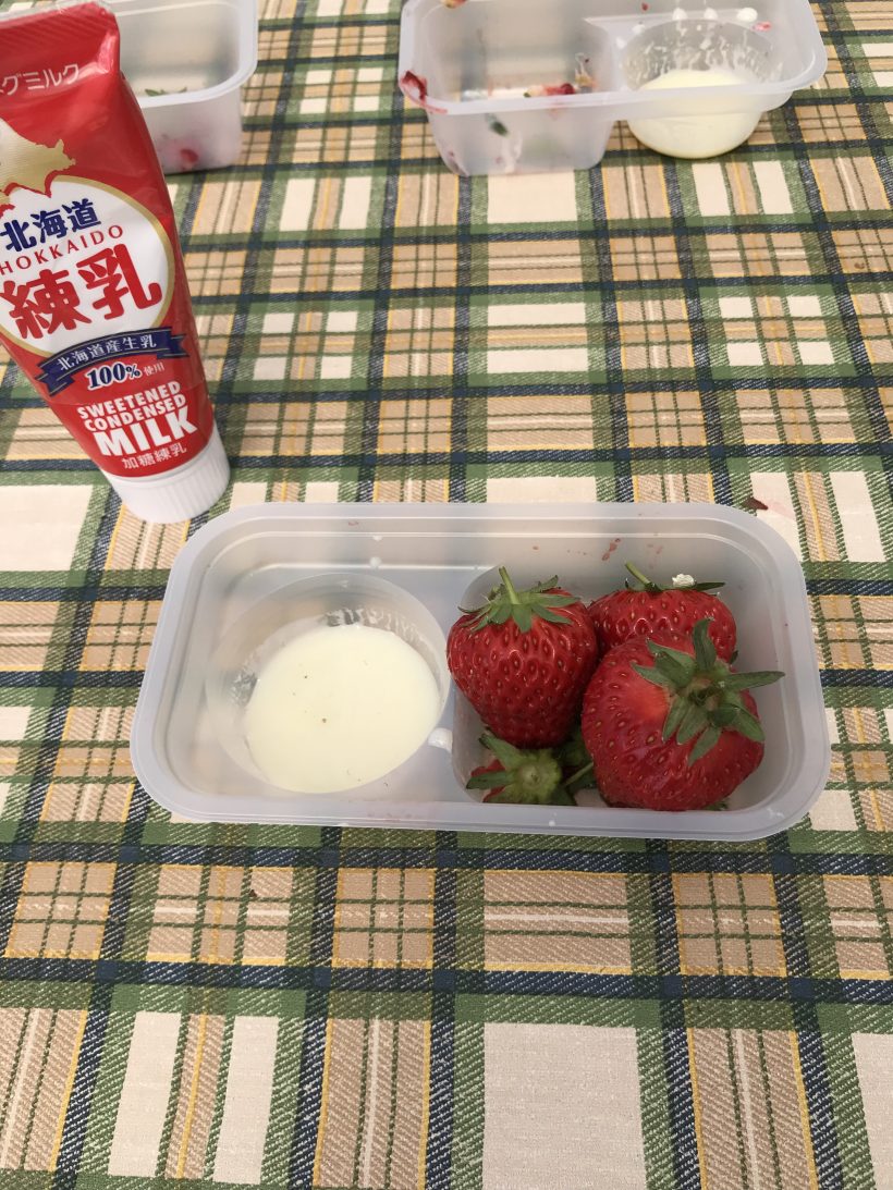 子供が好きだからお土産も買ってきました。子供たちは練乳をたっぷりかけて食べるけど、私は練乳は苦手なんですよね。