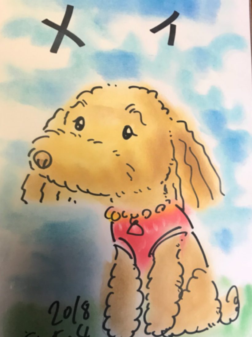 絵描き屋さんにトイプードルのメイちゃんを描いてもらいました。