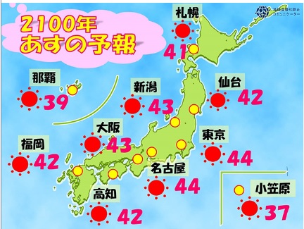 さて、先日テレビで2100年度の日本の天気予報図が流れていました。