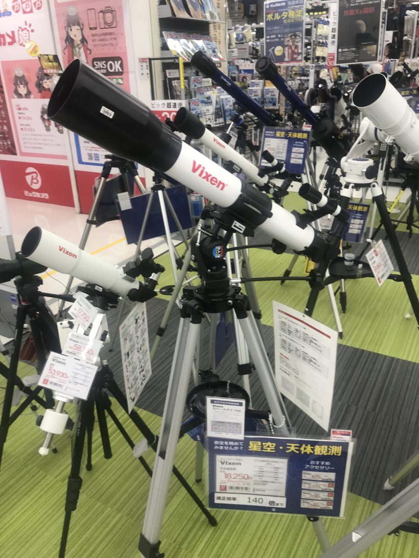 先日ヨドバシカメラに行ったら望遠鏡コーナーがありビクセンのいいやつがありました。
