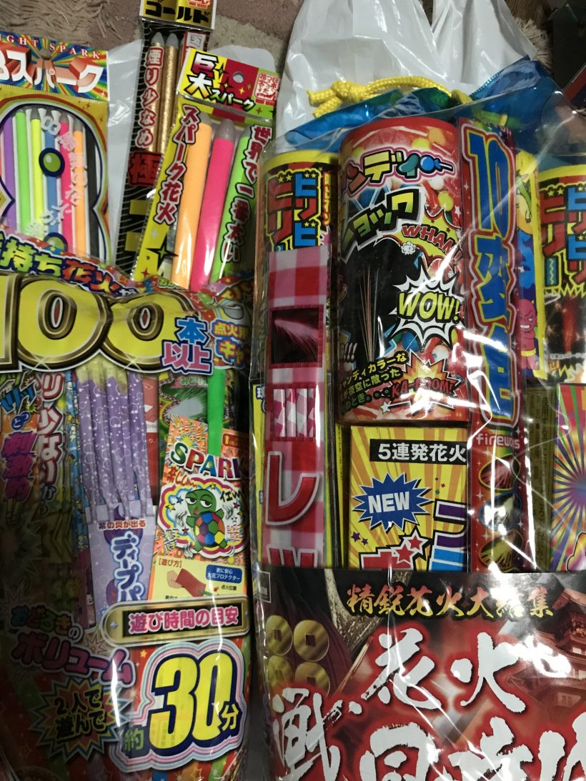 子供たちは手持ち花火には慣れてきて、両手持ちは当たり前。4~5本同時に火を付けたりします。