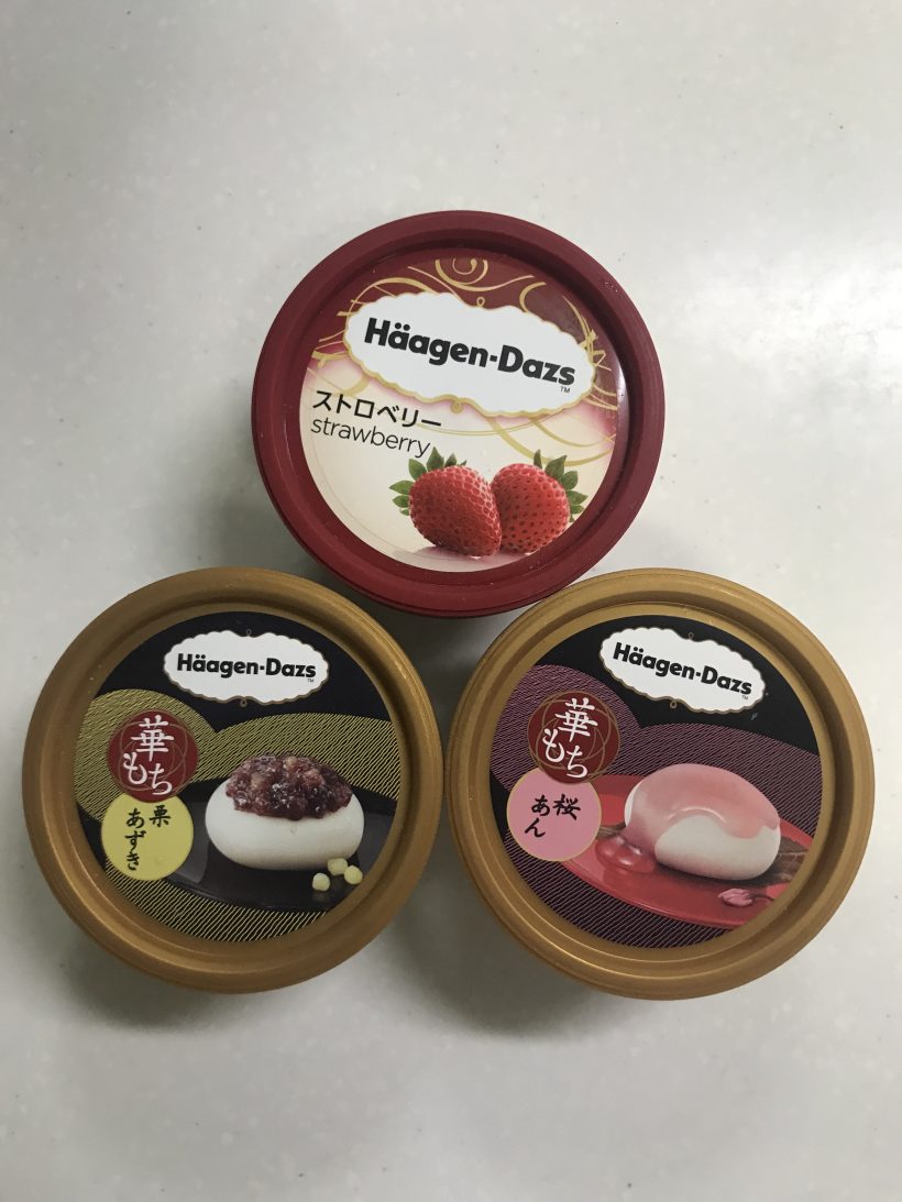 私は華もち桜あんと妻は華もち栗あずき、息子はアイス買っていいよと言うと迷わずストロベリーを買います。
