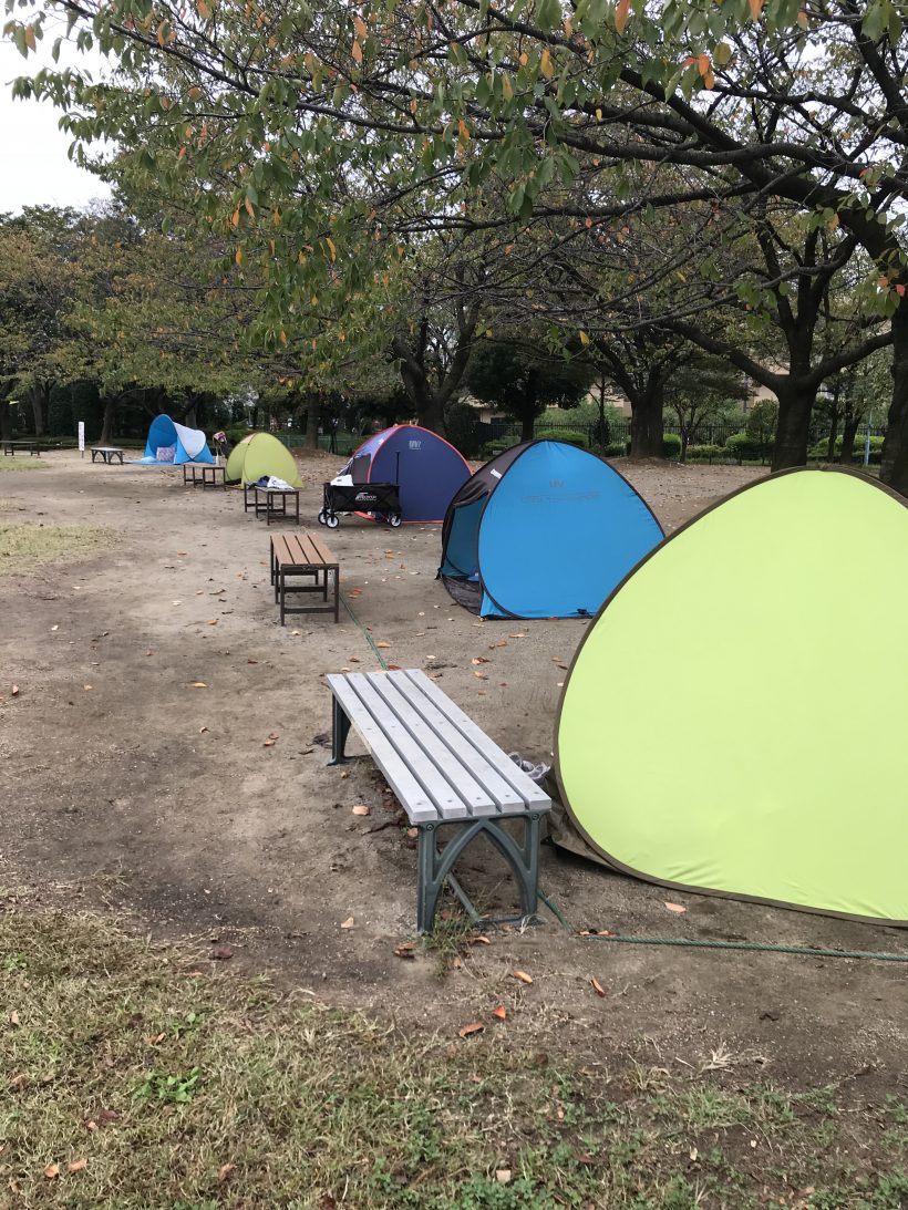 みなさんチャックを締めて密封して、テントの中でワイワイ昼食を食べたりしてました。
