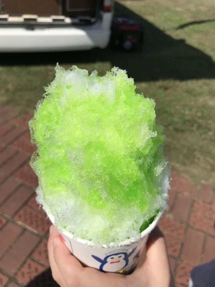 カキ氷屋さんを見つけて食べたいという子供たち。