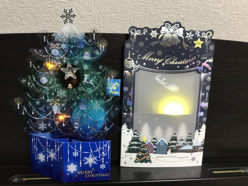 祖母が所沢西武デパートのLOFTで息子と娘に音が出るクリスマスカードを毎年プレゼントしてくれます。これを毎年楽しみにしてるんです。