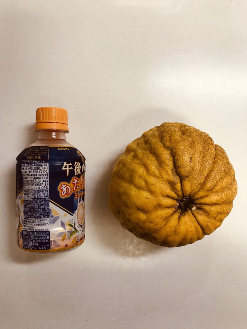 嫁さんが職場の人から大きなゆずをもらってきました。普通のサイズの4倍くらいあるかな。