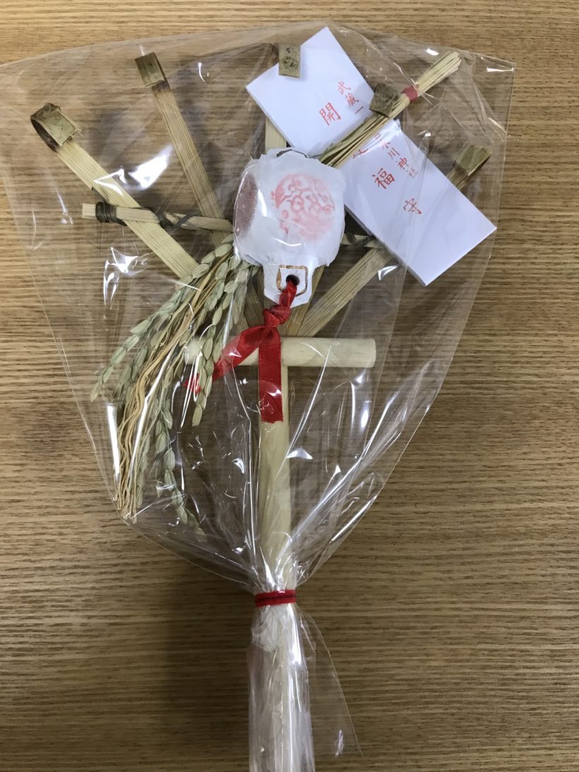 古いお札を返し、新しいお札や熊手、破魔矢など買ってきました。