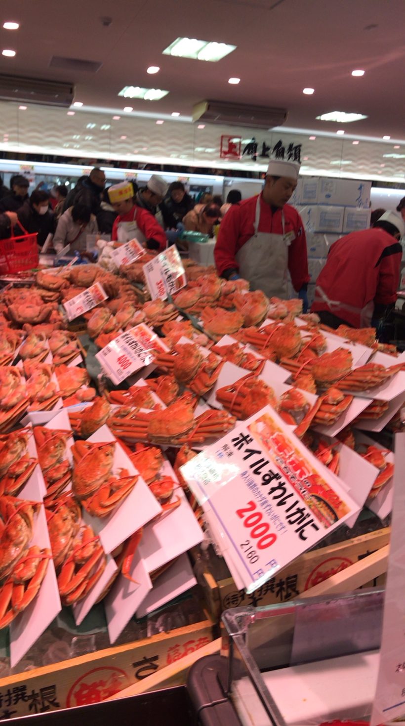 角上魚類はトロ、カニ、ホタテ、あわび、ふぐなどなんでも新鮮で、とっても美味しいです。カニのコーナーが入り口入ってすぐなのもあり一番混んでいました。