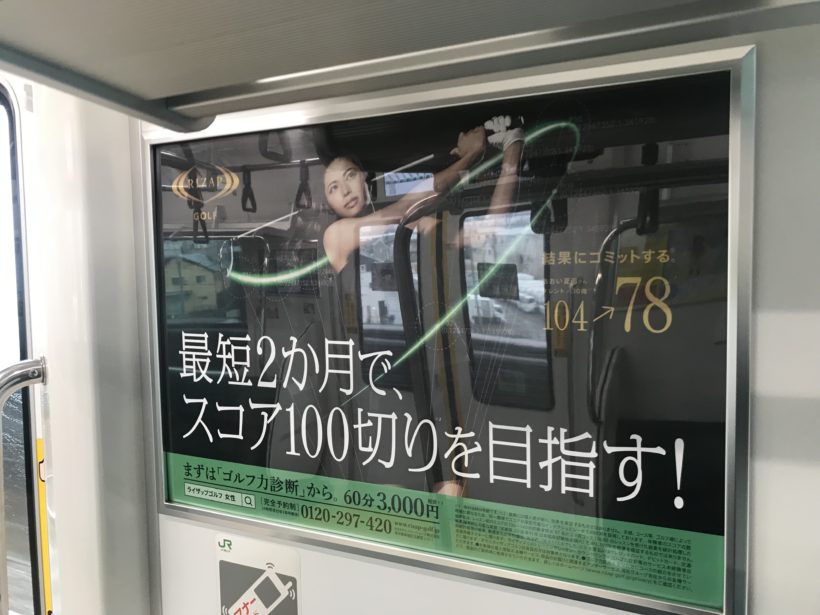 この中吊り広告のとなりにはライザップ英会話の中吊り広告がありました。