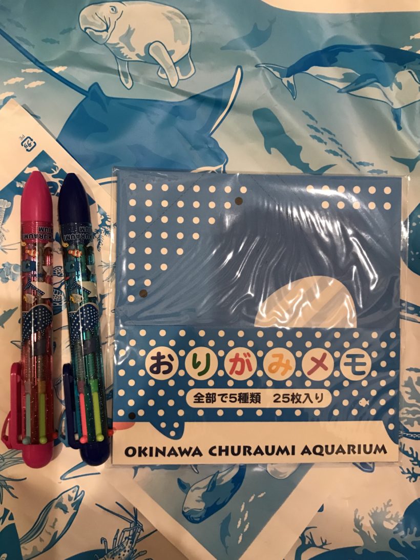 子供達は美ら海水族館の折り紙とボールペンなどもらいました。