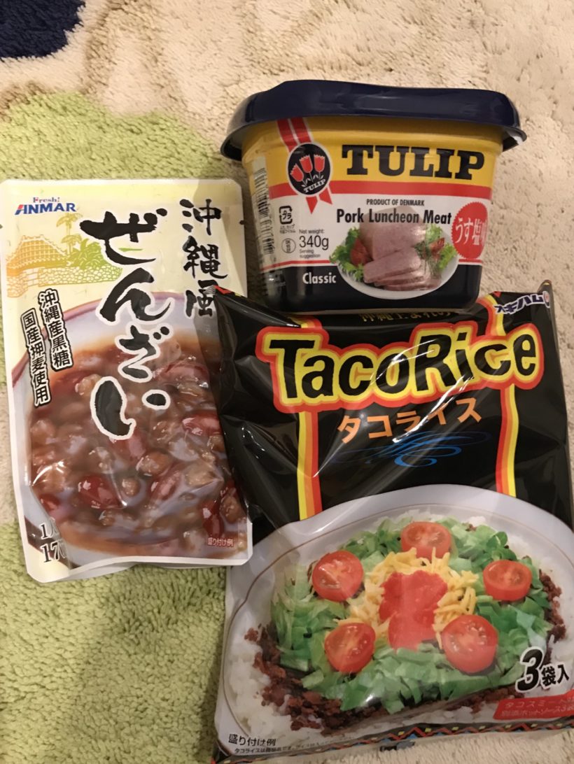 ちんすこうや沖縄ぜんざい、べにいもたるとをもらいました。