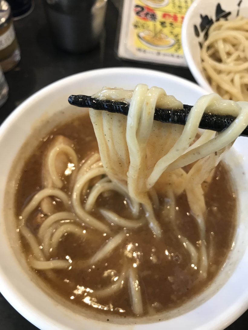 魚介とんこつのつけ汁もトロトロ濃厚で麺に絡みとても美味しいです。
