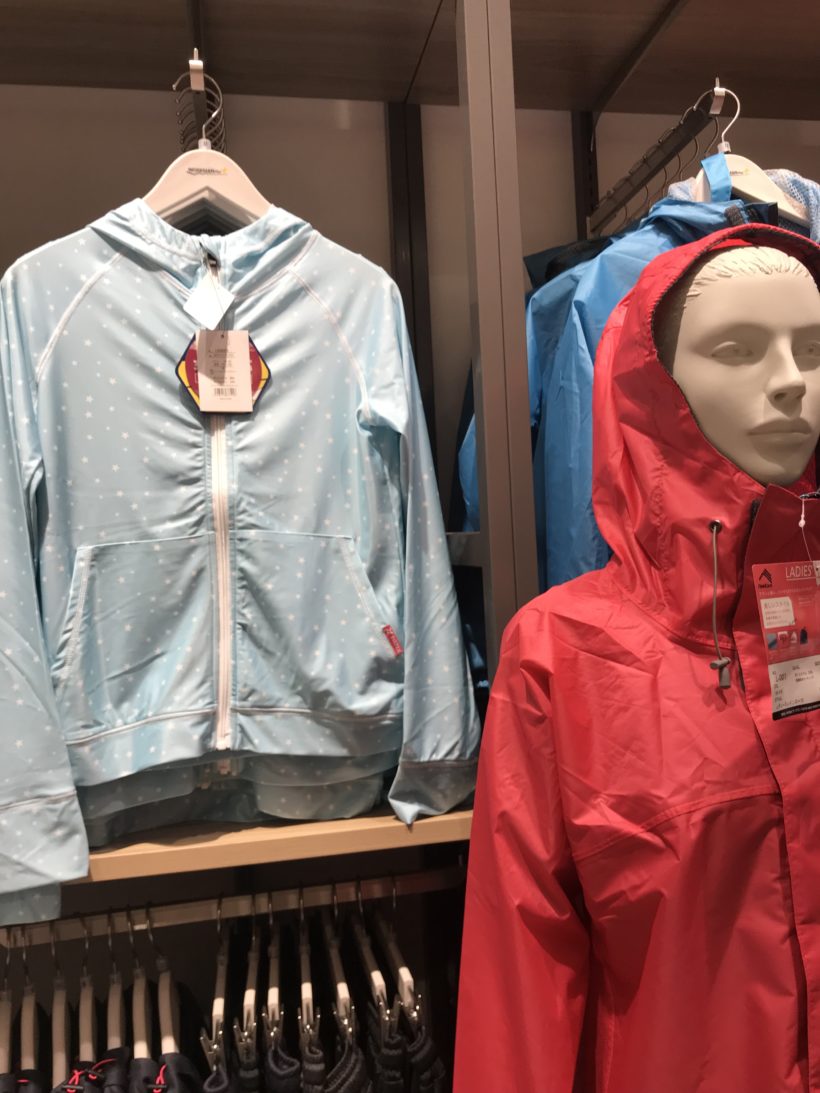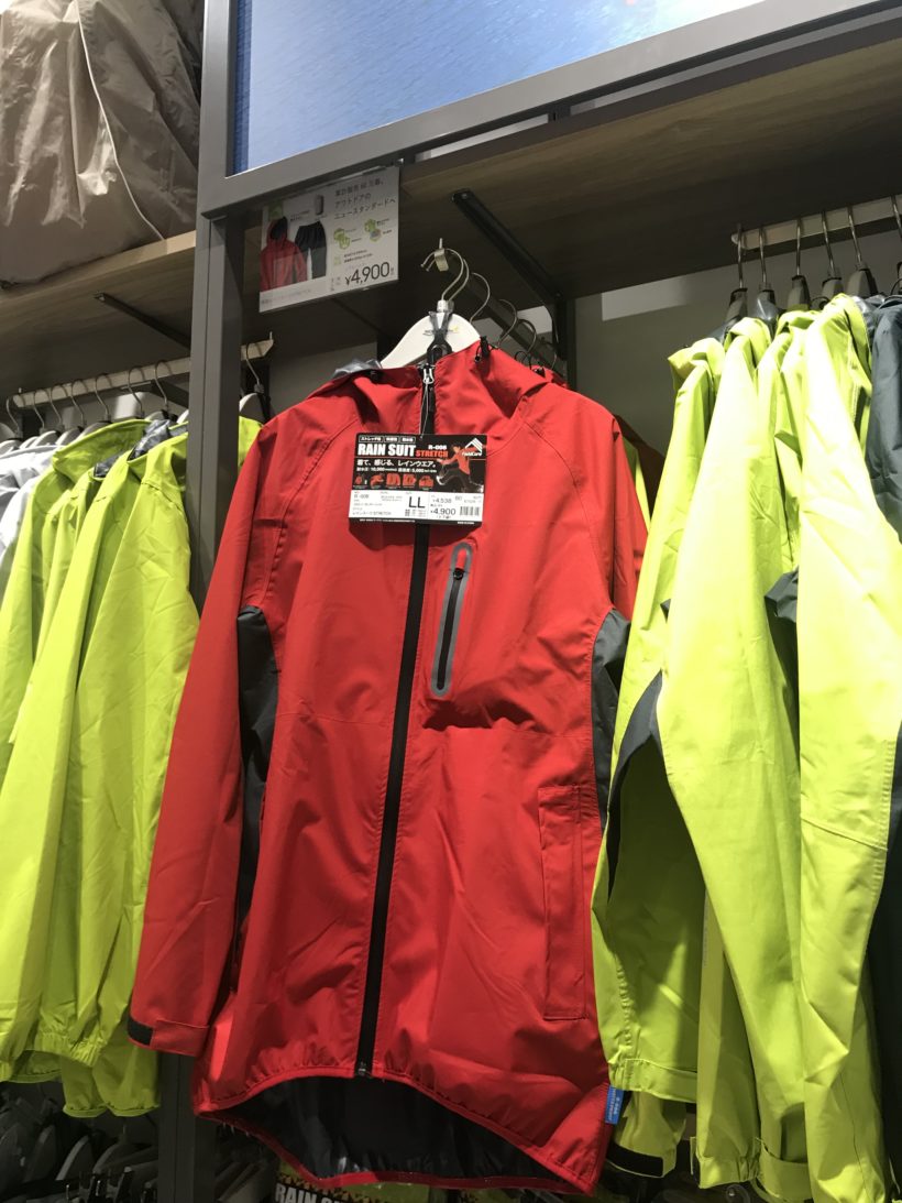 嫁さんが小学校の交通安全指導の時に傘をさすのは禁止とのことで、レインウェアを買いに行きました。