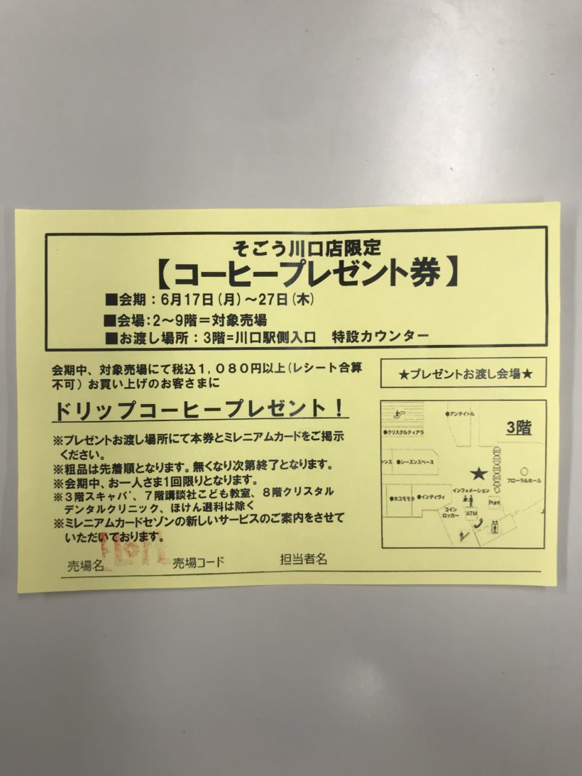 ドリップコーヒープレゼント券を配ってました。