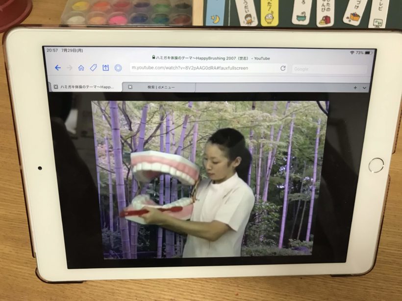 YouTubeは見慣れたもんで、「歯磨き体操のテーマ」を流すと楽しそうに磨きます。