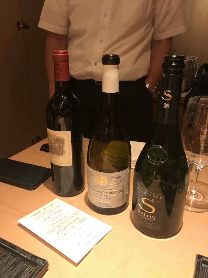 何よりワイン(SALON)やCHATEAU LAFITE ROTHSCHILDや獺祭のスパークリングを飲みました。
