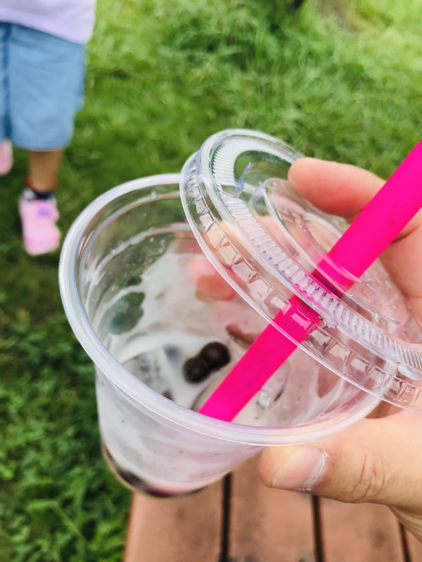 息子は初タピオカ。