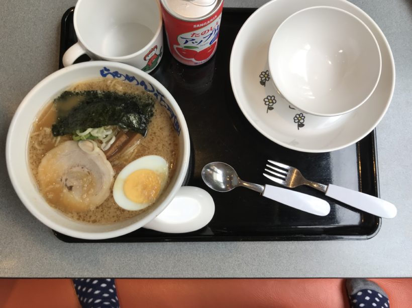 背脂ラーメンを娘が食べられるか心配しましたが、美味しいとペロリと全部食べました。