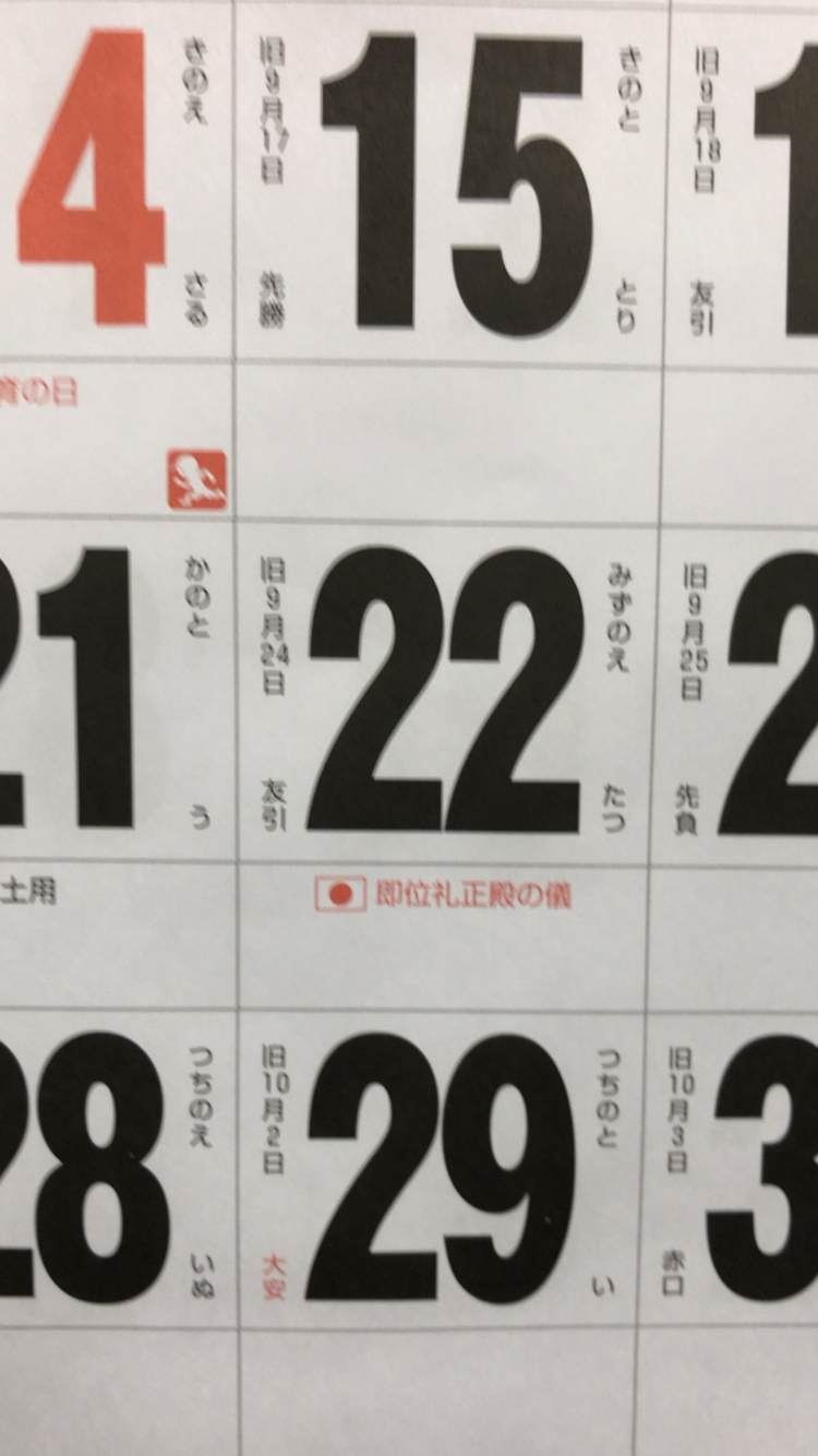 10月22日は即位礼正殿の儀が行われる日で国民の休日ですね。会社の人に言われて気付きました。