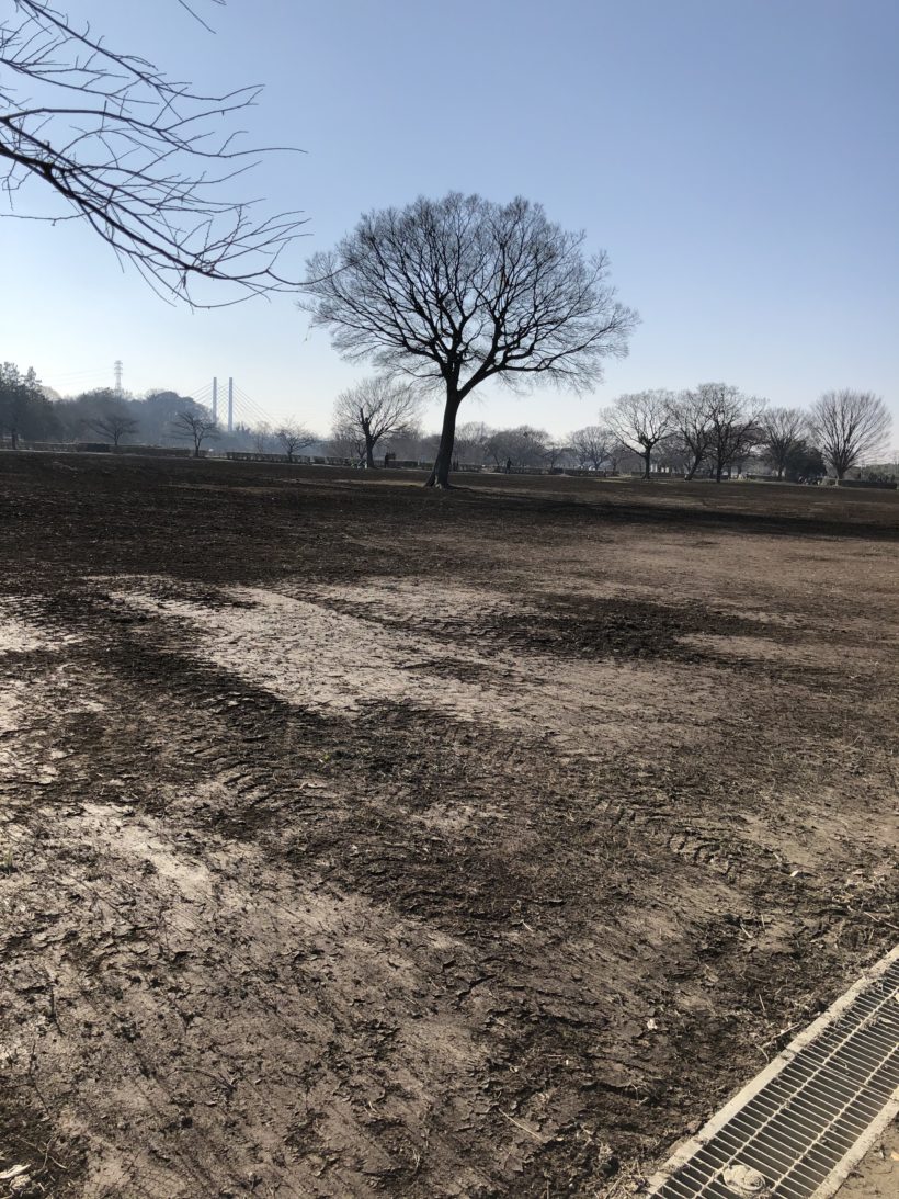バーベキューで賑わう芝生の広場も芝生はなく、人もまばらでした。