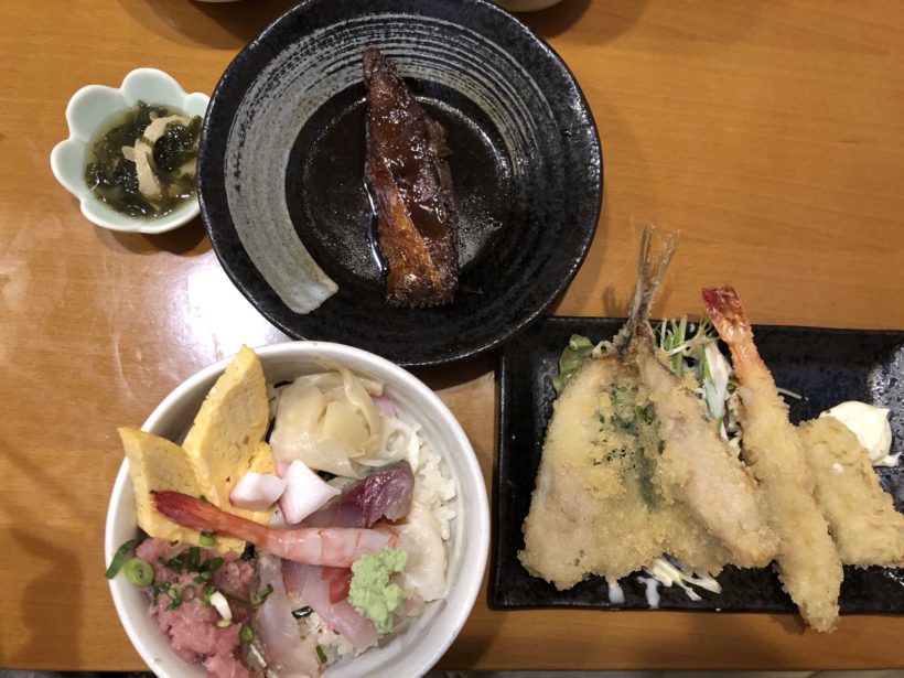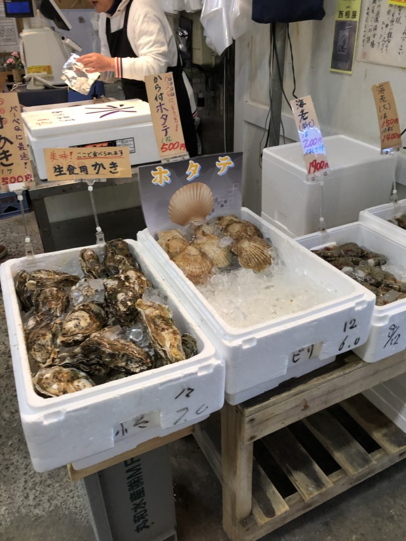 新鮮な魚介を買ってすぐ食べられるバーベキューや、豊富な海鮮料理が揃うお食事処が数店舗まとまってあり、漁港市場の新鮮な魚介類も買えます。