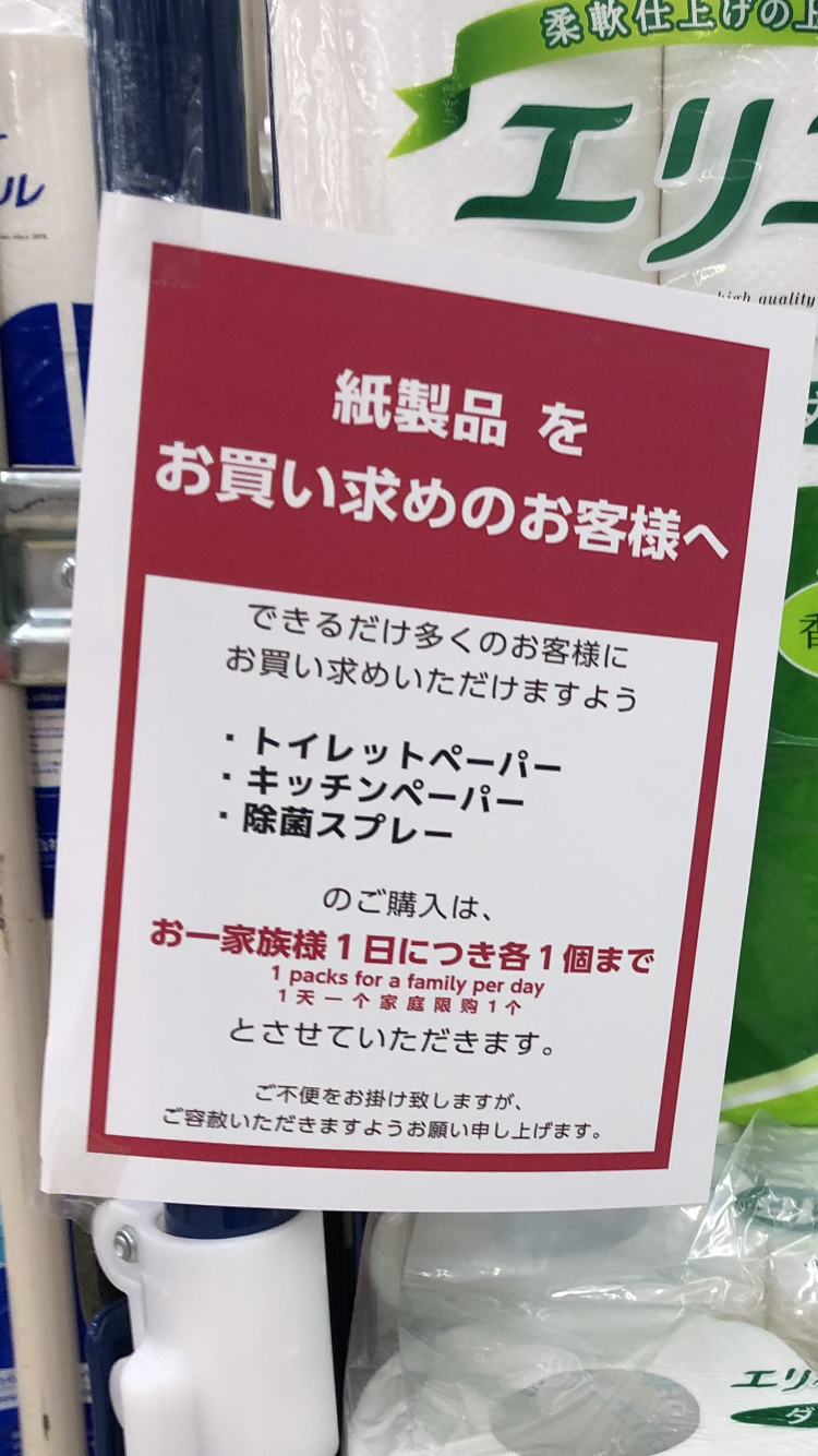 今はどの店も制限付きで買い占めをしないようにしてますね。