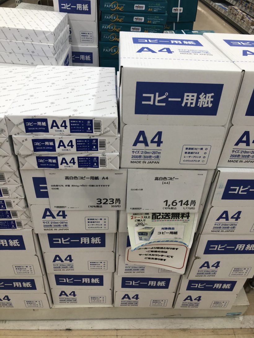 テレワークで自宅で仕事しているとどうしてもコピー出力するのでコピー用紙を大量に購入しました。