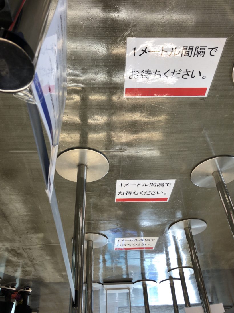 銀行は1メートル以上あけて、ATMも一人飛ばし。だから待ち時間は長くなってました。