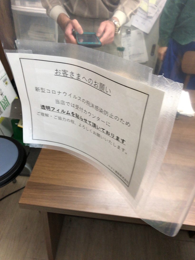 ヤマトやドラッグストアのレジや荷物出し受付などはフィルム幕で対面対策しています。