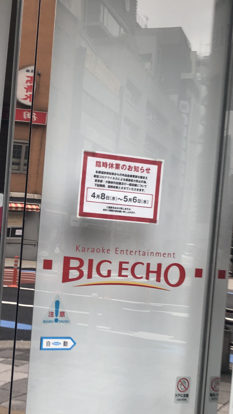 カラオケは休業中。まあ、いまカラオケに行こうと思う人はいないと思いますが…。