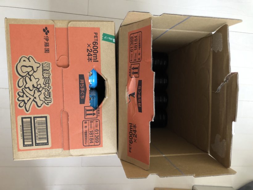 買い物のスーパーは妻に任せていますが、飲み物は私が箱買いしています。