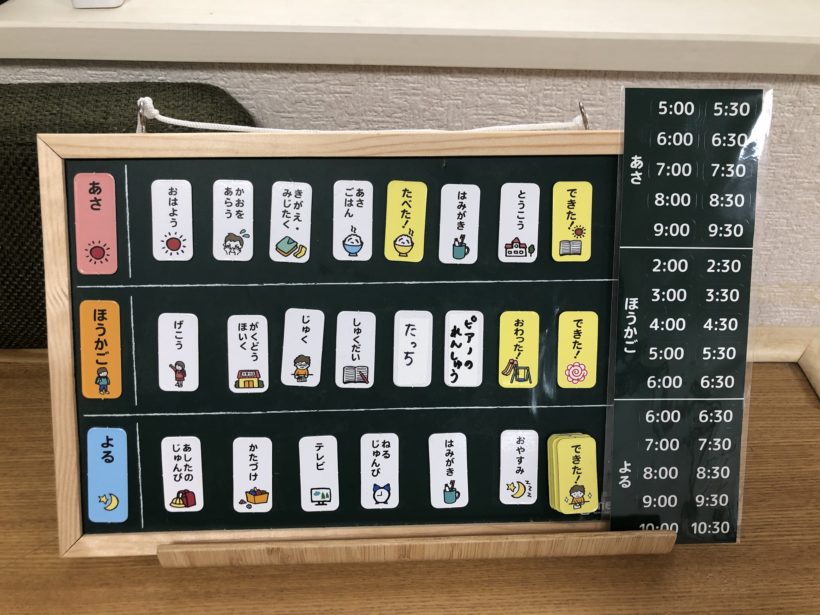 朝昼夜と何をすればいいか人目でわかるから親も指示し易いし、こどもも分かりやすいと思います。