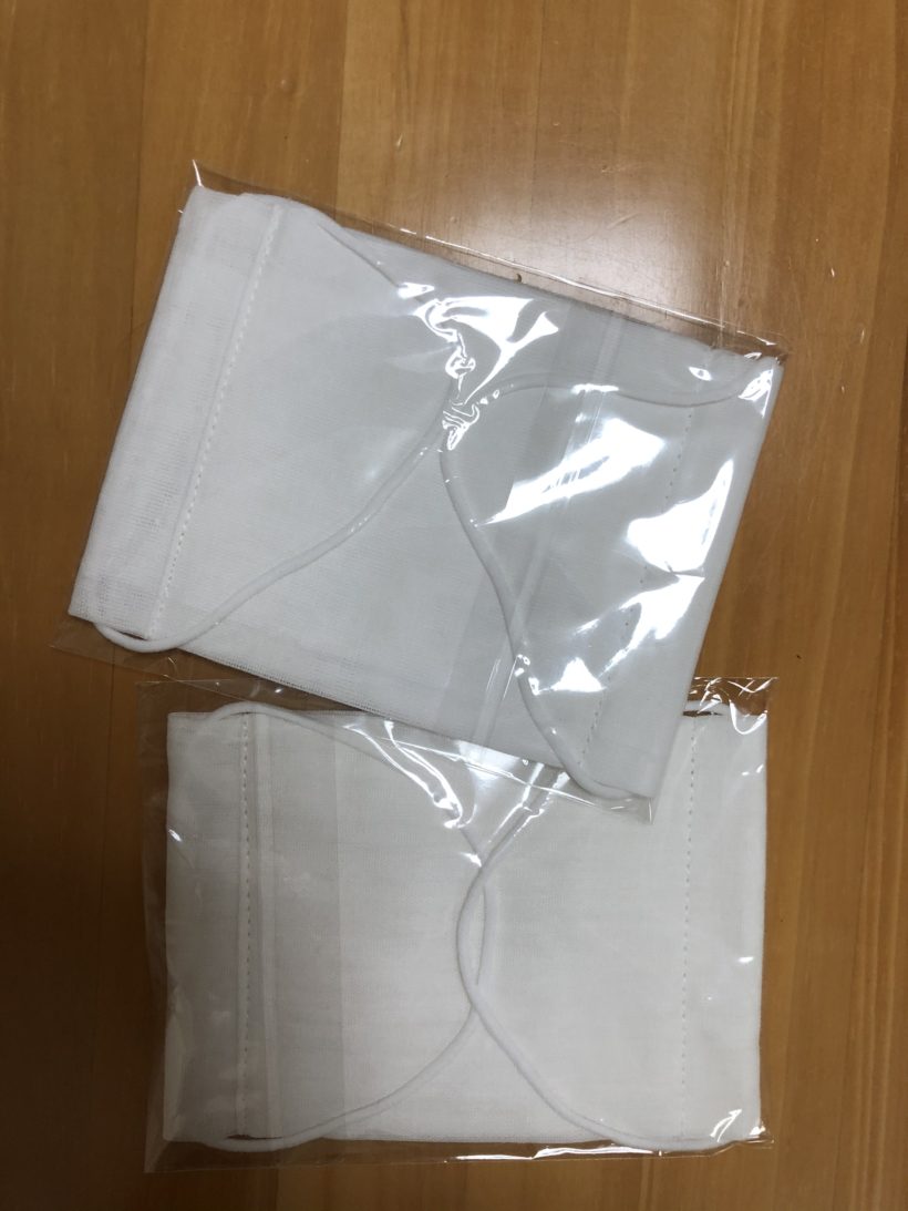 家に配られる前に子供たちが小学校から配布されアベのマスクをもらってきました。