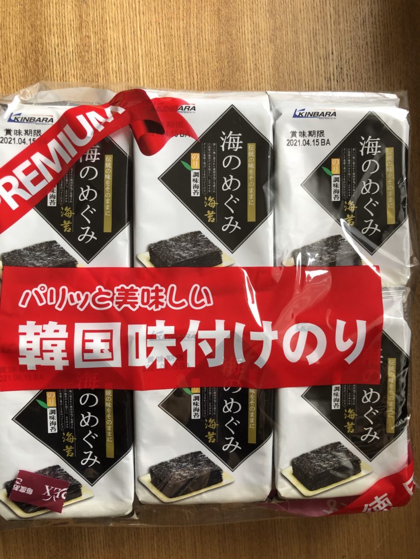 日本の海苔は好きでないのに、韓国海苔は大好きなんです。
