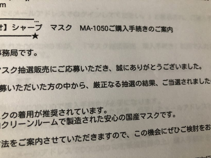 先日忘れかけてた頃に抽選に当選の連絡がきました。