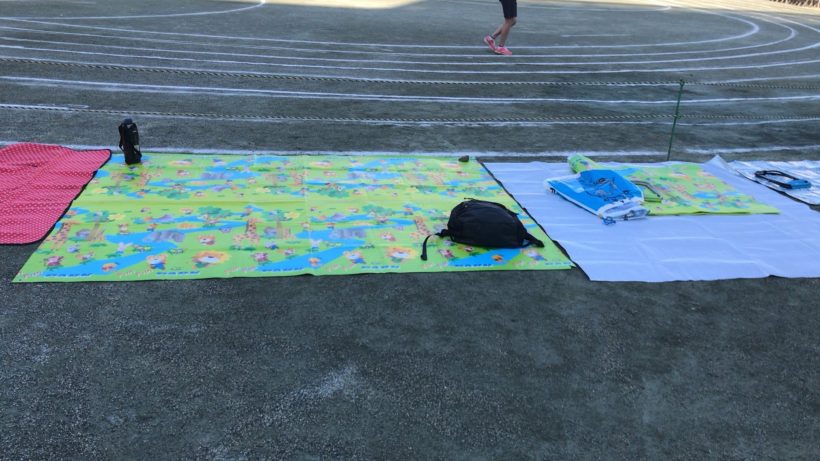 毎年朝5時前に小学校の正門前に並んで、7時の開門まで待ち、場所取りをしています。