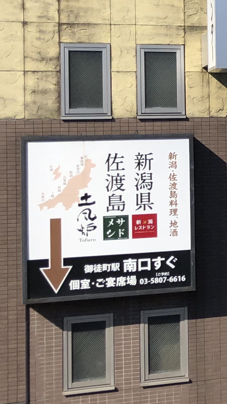 御徒町駅からの帰りのホームでいつも気になるのが新潟県 新潟レストランと佐渡島サドメシの看板です。
