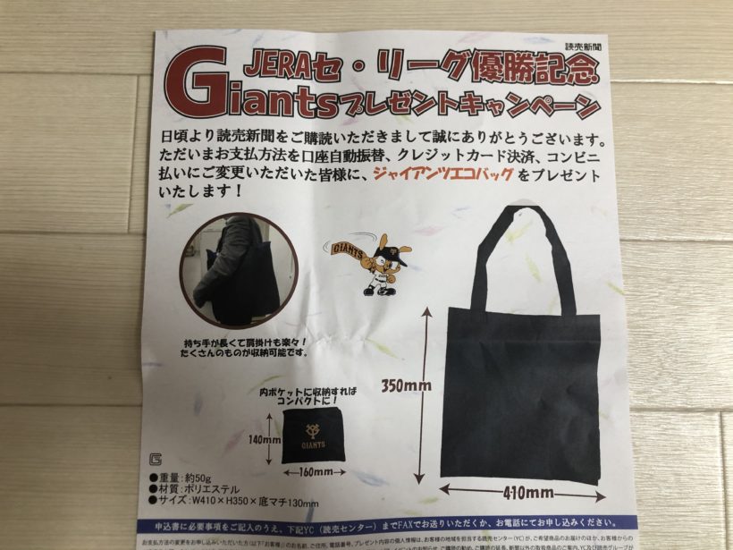 読売新聞からは優勝記念プレゼントキャンペーンの案内がよく来ます。
