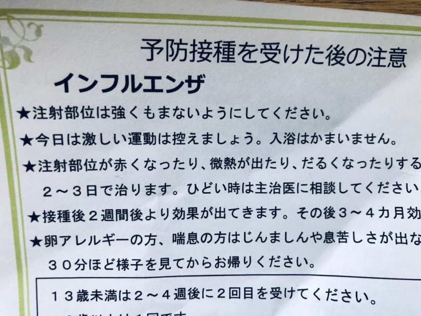 地元さいたま市の行きつけの内科で10月中旬に予防接種に行きました。