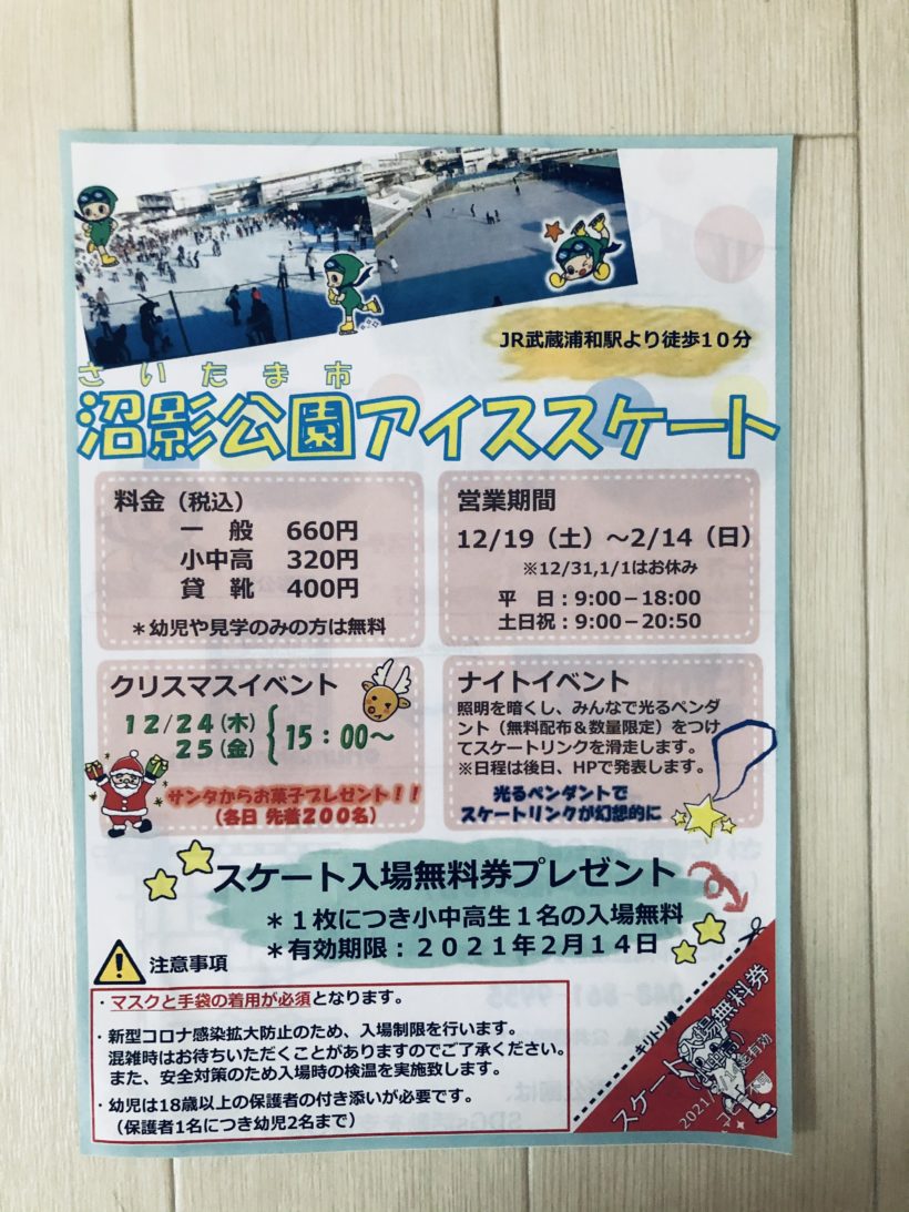 娘が小学校からアイススケートの案内をもらってきました。