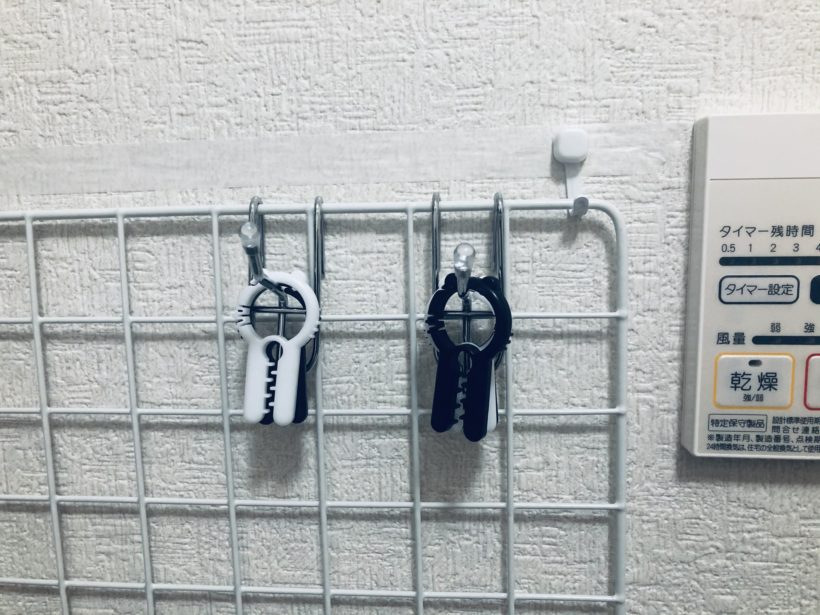 そこで考えたのが靴下クリップです。家に帰ってきて靴下を脱いだらちゃんと裏返してこのクリップに止めるようにしました。